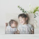 Plaid de búfalo de color dorado con tipografía de Navidad y su nombre en texto blanco invitación de foto de vacaciones de Navidad.