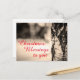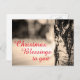 Una escena rústica del invierno con un árbol de abedul. El texto rojo pone en contraste los tonos blancos y negros de la sepia del fondo. El frente dice "bendiciones del navidad a usted". La parte posterior dice que "este el navidad se puede usted y sus amados bendecir con la alegría de su presencia y la paz reservada de las vacaciones." Hay también una referencia de la escritura al 29:11 del salmo "que el señor da fuerza a su gente; el señor bendice a su gente con paz." Usted puede personalizar cualquier aspecto de esta postal, de la selección de la fuente a los colores y a la fraseología. Haga clic en el personalizar él para ver sus opciones. Éstas son tarjetas agradables si usted está buscando algo diferente de la escena de la natividad o de los ornamentos tradicionales del navidad. Su pacífico y tono es muy la antítesis de cuál es generalmente una estación agitada ocupada.