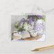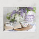 Un jarrón de lilas, gafas, un libro, y una taza de té, una imagen tranquilizadora con palabras de la Biblia "El Señor dará fuerza a su pueblo; el Señor bendecirá a su pueblo con paz" Personalizar la carta con el texto de su elección, y es fácil cambiar la imagen también si así lo deseas.