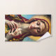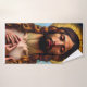 La Santísima Virgen de Jesús María y Ángel Bath Toalla Set presenta imágenes icónicas de Jesús, la Virgen María, y un ángel en este singular conjunto de toallas religiosas, diseñado para parecer pintado del periodo renacentista al estilo de Boticelli el pintor.