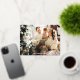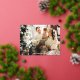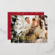 "Bendecido" o personalice su mensaje en el frente con lámina dorada y borde de lámina dorada. Agregue su foto, nombre, año y mensaje en la parte posterior. La parte posterior tiene texto en letra cursiva blanca y estrellas doradas sobre fondo rojo intenso.