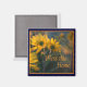 Imán con una foto retroiluminada de girasoles pantanosos tomada del centro del jardín. El mensaje "Bendiga este hogar" en el naranja de calabaza es parte de la imagen. Perfecto para añadir un toque de Caída a su frigorífico o archivador. © Little Wing Photography & Design