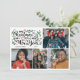 Foto tradicional de Navidad con Feliz Navidad y un feliz Año Nuevo con cuatro fotos de tu familia y vegetación y bayas rojas en un collage horizontal.