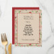 Estas tarjetas de menú tienen un diseño rojo y verde de bayas y follaje de invierno con un marco doble rojo sobre un fondo kraft-look. La parte trasera tiene un rojo sólido y coordinado. Puede cambiar el nombre del evento y los elementos de menú con las plantillas que he proporcionado. También puede añadir información sobre la parte posterior antes de comprar. Si te gusta lo que ves, pero no ves lo que quieres, puedo editar mis diseños para imprimir en los elementos que necesitas. Para sus pedidos y problemas de envío, póngase en contacto con el Servicio de Atención al Cliente de Zazzle a través de https://goo.gl/nCgptf