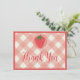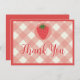 Berry First Birthday Gracias Card. Con fresas rojas de fondo rosado. ¡Perfecto para la celebración del primer cumpleaños de tus niñas! También hay invitaciones, carteles y decoración de coordinación.