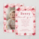 Berry First Birthday Photo Bow Thank You Card