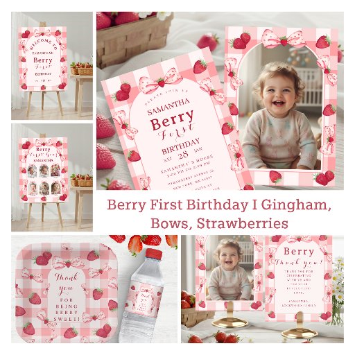 Berry First Birthday I Gingham, Bows, StrawberriesDiseñado por Snjeza N.