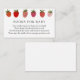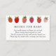 Una tarjeta de inserción para la ducha para bebés solicitada por un libro. Con adorables fresas y poema: "UNA PEQUEÑA PEQUEÑA PETICIÓN, ESPERAMOS QUE NO SEA DIFÍCIL POR FAVOR LLEVAR UN LIBRO EN LUGAR DE UNA TARJETA QUE ELLOS PRESIONARÁN EL LIBRO, BIEN AMADOS O NUEVO POR FAVOR RÓTULO EL INTERIOR CON UN MENSAJE DE USTED".