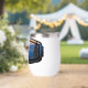 Berthoud Pass Open drink container with ski goggles and a photograph from the top of the pass.