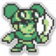 Este pegatina presenta arte de píxeles de Beryl Hatebad, el último intendente de piratas y la cabeza lógica sobre los hombros de todos. Este diseño fue hecho por Thomas Lessa.