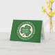 La tarjeta de saludo irlandesa Kiss Me I'm es la forma perfecta de celebrar el Día de San Patricio. El diseño divertido incluye el texto "Bésame soy irlandés" en blanco sobre el shamrock central, junto con una insignia redonda, en verde y blanco, que dice "Feliz Día de San Patricio". ¡Apropiado para todas las edades! Personalizar el texto como desee. ¡Mira la camiseta, gorra, tarjeta, franqueo, platos y más!