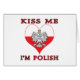 Este diseño presenta un corazón blanco y rojo con una bandera polaca, con un águila blanca, el emblema nacional de Polonia en el centro y las palabras Kiss Me I'm Poland (Bésame soy polaco). Perfecto para el El día de San Valentín o cualquier día.