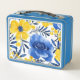 Saboree sus comidas con el "Blossom Bite Lunchbox", un elegante y robusto contenedor de comida metalizado con encantadores diseños florales azules y amarillos. Perfecto para comidas, tentempiés o picnic, esta lata florida le da un ambiente fresco y alegre a cada bocadillo.