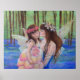 Una pintura bellamente sentimental que muestra el amor que una madre tiene por su hijo. En un campo de lavanda con olor dulce, una madre besa la mejilla suave de su hija. ¡Los colores son realmente bonitos! Mi propia pintura original fue usada para esta impresión. El original es un medio mixto de madera.