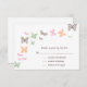 Este RSVP está decorado con delicadas mariposas en vuelo. Se muestra en el papel básico; sin embargo, recomiendo el peso y textura del papel de lino. También se coordina fácilmente con la colección boda Besos de Mariposa Morada.