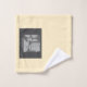 The Wash Cloth features a calm, sand-like design in warm beige and natural tones, reminiscent of fine beach or desert sand. A subtle artistic illustration is printed: a young woman sitting cross-legged in a classic yoga pose.