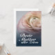 Die Nahaufnahme einer pinken Rosa auf blauem Hinergrund Muttertags- oder Geburstagsgrüßen. Muere restliche Fläche der Karte ist frei gestaltbar. deutsch
