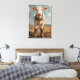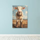 Esta obra de arte muestra a una vaca con botas de vaquero, de pie cara a cara con una expresión divertida, casi cómica. Los colores tenues, en un antiguo estilo de pintura, le dan un ambiente rústico y vintage. La hierba seca y las colinas distantes crean un entorno occidental tranquilo, mientras que el cielo azul y las nubes dan un toque de serenidad. Una etiqueta etiquetada como "Betsy" dangles de la oreja, añadiendo un detalle personal y humorístico. Con su encanto alegre y su ambiente occidental, esta pieza es perfecta para darle un poco de diversión a una casa de campo o a un espacio de temática rústica.