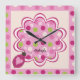Bicho rosa en el reloj de pared de guardería con p