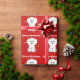 Diversión y perro lindo de Bichon Frise con el papel de regalo de las Felices Navidad de las luces de navidad