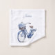 pintura acuarela de una bicicleta con una cesta llena de flores en los colores de Delft Blue
