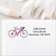 bicicleta rosa con etiqueta blanca