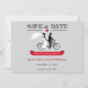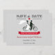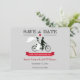 De moda Guardar las tarjetas de fecha con una novia y un novio en una bicicleta tándem. Diseño divertido con un cartel rojo sobre un fondo gris. También disponible en otros colores. Obtén los sellos de fecha correspondientes a continuación: