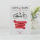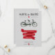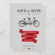 De moda Guardar las tarjetas de fecha con una bicicleta tándem y el corazón rojo y pancarta. Diseño divertido con un cartel rojo sobre un fondo gris. También disponible en otros colores.