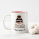 Personalice a este profesor lindo difícilmente en el trabajo en papeles de clasificación de una rebeca rosada en un planes de lección laterales y de fabricaciones en el otro. Ella lleva un lápiz a través del bollo en su pelo y mantiene algunos lápices adicionales una taza con una manzana en forma de corazón en ella. En el otro lado ella está haciendo planes de lección con las porciones de notas pegajosas, de un highlighter y de pluma disponibles. Personalícela con el nombre de su profesor pelado feria del pelo negro en un lado y el grado que ella enseña en el otro lado. © Chrissy H. Studios, LLC de las ilustraciones. Todos los derechos reservados.