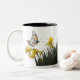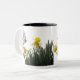 Las flores magníficas del narciso y las mariposas de monarca amarillas y blancas que vuelan la pintura digital de la fotografía están en esta taza.