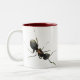 Esta taza presenta dos hormigas más grandes que las de la vida arrastrándose a través de la taza.