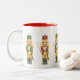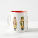 Abrigo rojo y verde de los cascanueces alrededor de esta taza para un regalo de vacaciones festivo. Ilustracion de Mitzi Sato-Wiuff para el estudio Miyabi.