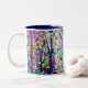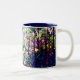 Diseño del vitral en colores ricos en esta taza 15 0z. Si usted mira de cerca, usted verá que los árboles altos se abren hacia fuera en un prado.