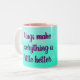Taza de café personalizada de 444ml. ¡En cuanto a tamaño sólo puedo decir que enorme! pero es lo que esperaba así que estupendo. En el asa me entra la mano entera y no sólo tres dedos como me ocurría con las otras tazas. También comentar que es el tamaño que se ve en las series americanas, tanto para café como para infusión. En cuanto al acabado decir que es correcto, con poco tiempo de uso no puedo especificar mucho más. Pude escoger el nombre y el color pero no la tipografía, quizás esa elección pueda decidir a más gente. En términos generales y por el momento, buena opinión.