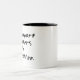 Taza de café personalizada de 444ml. ¡En cuanto a tamaño sólo puedo decir que enorme! pero es lo que esperaba así que estupendo. En el asa me entra la mano entera y no sólo tres dedos como me ocurría con las otras tazas. También comentar que es el tamaño que se ve en las series americanas, tanto para café como para infusión. En cuanto al acabado decir que es correcto, con poco tiempo de uso no puedo especificar mucho más. Pude escoger el nombre y el color pero no la tipografía, quizás esa elección pueda decidir a más gente. En términos generales y por el momento, buena opinión.