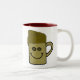 ¡Este es el regalo perfecto para el amante de los pasteles de chocolate que conoces! La receta del pastel en una taza está justo en la taza con una taza feliz con una torta sonriente en el lado opuesto.