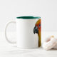 Taza de las plumas del escarlata con actitud del loro del compañero