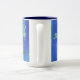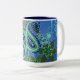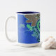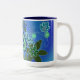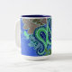 Las volutas de Paisley, los narcisos estilizados y las hojas adornan esta taza en un arsenal de azules y de verdes. De un dibujo inspirado por diseños del mehndi de la alheña, esta taza es una expresión a pulso del misterio y de la felicidad para la taza de la mañana.