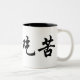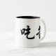Beba su café de la mañana con esta taza creada para requisitos particulares. En caligrafía china lee "comen amargo". Un refrán famoso usado por muchos monjes y chinos de Shaolin en general para denotar fuerza con trabajo duro y el esmero.