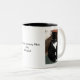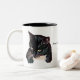 Dos fotos de mascota del gato negro y de mensaje personal en el lado de la taza