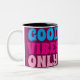 Bolas de café de cerámica con la imagen de un pie adornado con joyas elegantes en un lado y la frase ascendente "Sólo buenas vibraciones" en el otro lado.