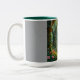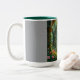 Una imagen de jardín botánico verde cubre esta taza de café de dos tonos.
