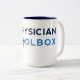 Taza de café con el logotipo de la caja de herramientas del médico.