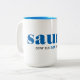 Taza de café moderna con tema finlandés y la frase "Sow-na no Saw-na".