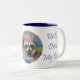 Taza de café personalizada de 444ml. ¡En cuanto a tamaño sólo puedo decir que enorme! pero es lo que esperaba así que estupendo. En el asa me entra la mano entera y no sólo tres dedos como me ocurría con las otras tazas. También comentar que es el tamaño que se ve en las series americanas, tanto para café como para infusión. En cuanto al acabado decir que es correcto, con poco tiempo de uso no puedo especificar mucho más. Pude escoger el nombre y el color pero no la tipografía, quizás esa elección pueda decidir a más gente. En términos generales y por el momento, buena opinión.