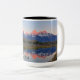¡Mire sobre el Tetons hermoso siempre que usted llene su taza! ¡Esta salida del sol en el aterrizaje de Schwabacher en el parque nacional magnífico de Teton puede ser su escena para despertar diaria!