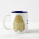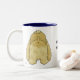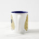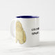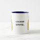 La taza de cocker spaniel con una vista delantera de la nariz grande de un cocker en un lado de la taza y su extremo posterior adorable apoyan la opinión sobre el otro lado de la taza. Los colores y el texto del fondo pueden ser cambiados. Apenas haga clic en el personalizar él botón.
