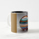 Un elegante diseño de mármol con capas de colores vibrantes decora esta taza de dos tonos.