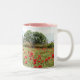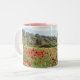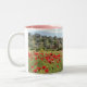 Esta taza es una taza del dos-tono con en el exterior que usted verá una fotografía maravillosa de un campo de la amapola, y el interior que tiene un tono del NIC del rosa que felicita la imagen.