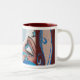 La taza temática del nouveau del arte tiene colores intrépidos, líneas orgánicas y un diseño temático de la luna.